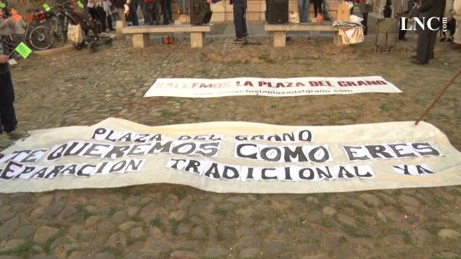 La Plaza del Grano ha vuelto este jueves al centro de la polémica en la capital leonesa. La Plataforma Salvemos la Plaza del Grano ha organizado una manifestación para evitar que se "cambie" el enclave, según han expresado en el manifiesto que han leído integrantes de la plataforma. La protesta convocada hace meses ha tenido su réplica por parte de la Asociación de Vecinos del Barrio del Mercado, que en la mañana de este jueves han vuelto a expresar su deseo de "que las obras se realicen con respeto, pero que se realicen", en palabras del presidente Miguel Ángel Gil.