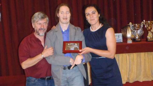 El momento más apasionante de la noche fue, sin duda alguna, cuando el presentador, Eduardo García Carmona, anunció la entrega de una placa por medio de Isabel García Álvarez, jefa del Servicio Territorial de Medio Ambiente, a Álvaro Lombas Sinoga y leyó el testo siguiente: «Álvaro, ribereño del río Bernesga y gran aficionado a la pesca a mosca, ganó el Primer Premio al Mejor Montaje de la Semana Internacional de la Trucha en el año 2002, era la XXXVI edición de la Semana y el IV concurso que se celebraba, este reconocimiento le motivó a un más a seguir imitando esos complejos insectos del mundo fluvial. Cuando todo iba bien, un suceso inesperado le interrumpió la vida, tuvo que parar largo tiempo y luchar duro para recuperarse, pero ya de nuevo vuelve a pescar. Hoy todos los pescadores le queremos reconocer su voluntad y esperanza. Gracias Álvaro, nos vemos en el río».Álvaro, demostrando sus logros, se incorporó para recibir la placa, este gesto emocionó a todos los asistentes que le dedicaron el más largo y fuerte aplauso de la noche.