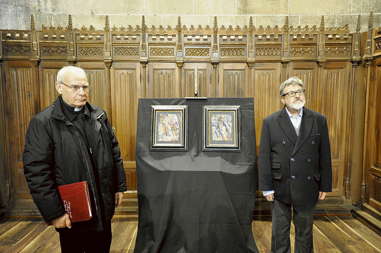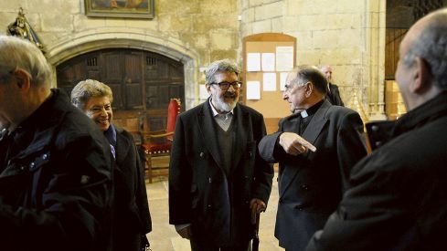 El pintor Pablo Gago recibido por el dean Antonio Trobajo el 28 de octubre de 2015 en la Catedral. | DANIEL MARTÍN