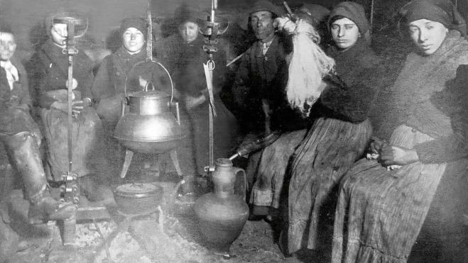 La foto —con los nombres que quieras— ya lo dice todo, pocas explicaciones necesita para este grupo de mujeres, la gran mayoría, que se reúnen para compartir calor y conversación, a combatir la excesiva duración de las noches y la oscuridad, a hablar, conversar y llevar a cabo alguna otra faena, depende de las fechas.