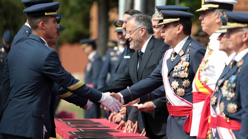 Durante el desarrollo del acto que sirvió como como colofón a tres años de formación militar y académica en la Academia Básica del Aire y del Espacio de León, el general del Aire Francisco Braco Carbó hizo entrega del Real Despacho y de la Cruz del Mérito Aeronáutico al sargento número uno de la XXXIII promoción, además de imponer otras condecoraciones a alumnos que destacaron durante su formación.