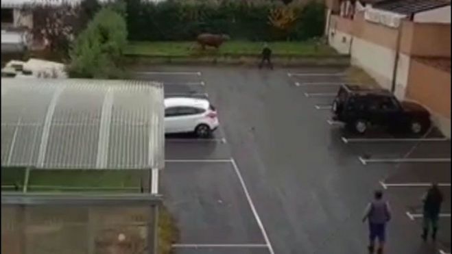 Los hechos ocurrieron el pasado miércoles por las calles de Toreno, cuando un vecino de la localidad se lio a tiros con una vaca suelta que llegó a un espacio verde de la localidad. Parece que la vaca estaba siendo conducida al matadero pero se escapó y se detuvo en este lugar, con hierba en la que pastar.