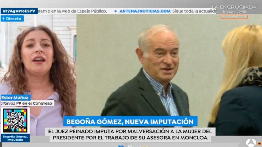 Momento inesperado para Ester Muñoz en su intervención esta mañana en el programa Espejo Público. La portavoz del PP en el Congreso, que compareció en el informativo para hablar acerca de los incendios que azotan la provincia, fue sorprendida por una abeja mientras hablaba acerca del caso de imputación de Bégoña Gómez. La leonesa se tomó con humor la picadura y bromeó acerca de la llamativa situación que vivió en pleno directo.