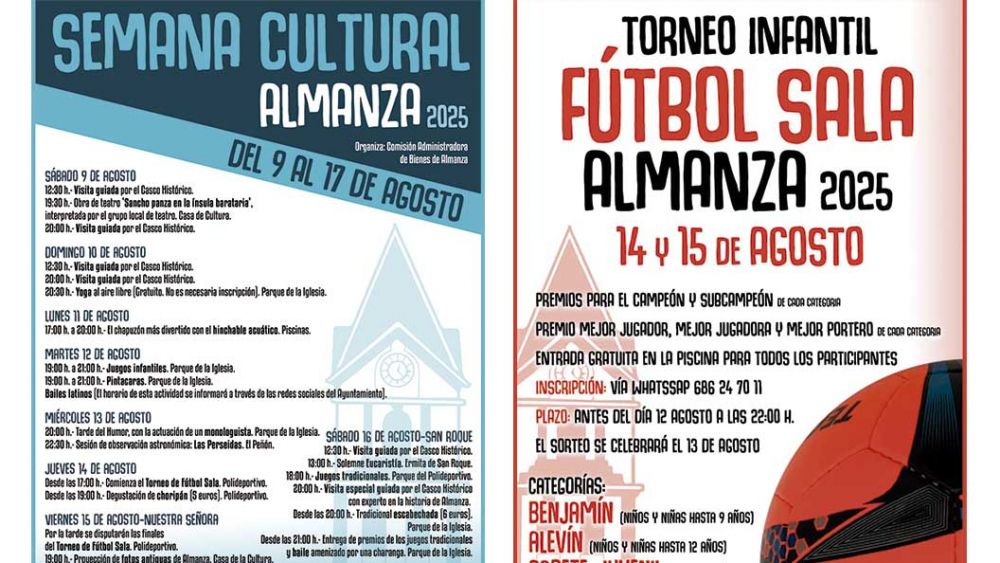 Almanza celebra desde este sábado y hasta el próximo día 17 su tradicional Semana Cultural con motivo de San Roque. Una maratón de actividades entre las que destacan los torneos de fútbol sala en las categorías benjamín, alevín y cadete-juvenil que enfrentarán a los equipos de distintos pueblos de la comarca.