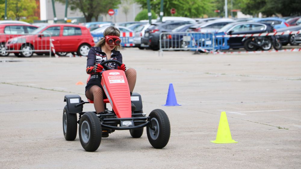 El aparcamiento de la Facultad de Ingenierías Industriales, Informática y Aeroespacial del Campus de Vegazana se transformó este jueves en un improvisado circuito de karts, donde estudiantes de la Universidad de León pudieron experimentar en primera persona los efectos que el consumo de drogas puede tener sobre la conducción.