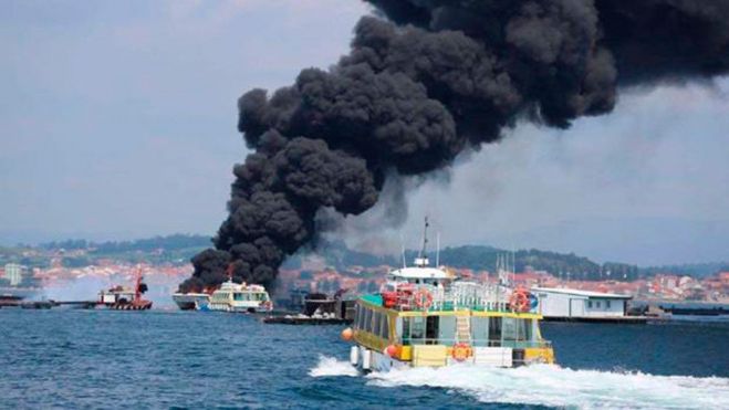 El fuego se desató pasadas las cuatro de la tarde cuando la embarcación chocó contra una batea