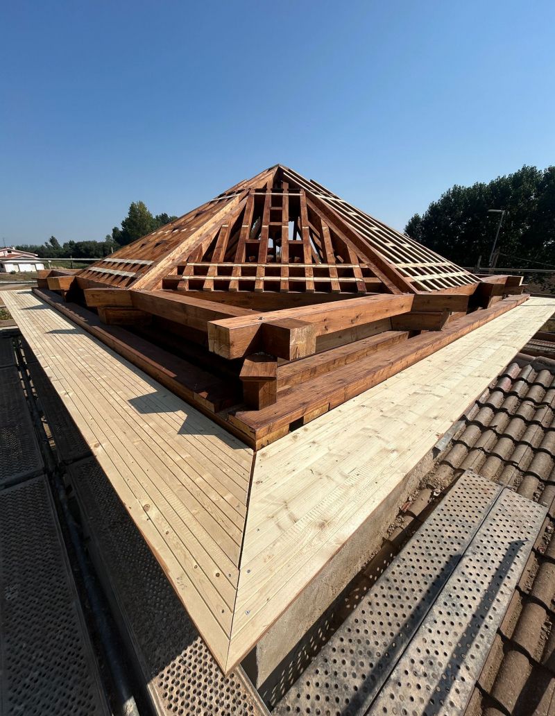 Una nueva estructura para el tejado de cuya elaboración se encargaron los carpinteros Agustín Castellanos Miguélez y Ricardo Camba Vallinas y que la han realizado junto con los alumnos de la vigesimosegunda edición de los cursos de verano programados por el Centro de Oficios y Artes Plásticas del Ayuntamiento de León que se desarrolló durante el pasado mes de julio.