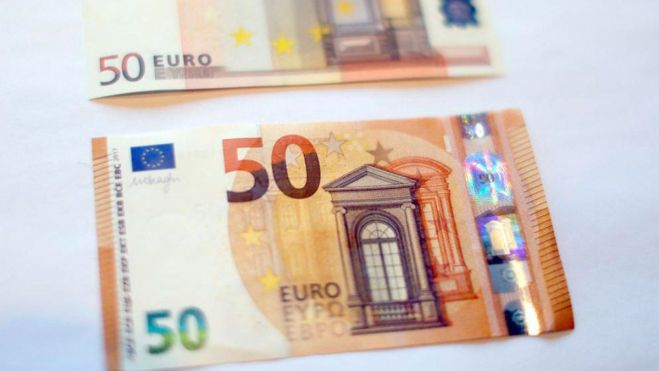 Es uno de los nuevos elementos de seguridad que incorporan los billetes de la serie «Europa» que se han ido introduciendo de forma progresiva en orden ascendente en los últimos cuatro años. Como en los anteriores de 5 euros (puesto en circulación en 2013), 10 euros (2014) y 20 euros (2015), los nuevos billetes apenas varían en su diseño, renovado por el alemán Reinhold Gerstetter, salvo porque ahora incluye a los países que se han integrado en la Unión Europea desde 2002. Malta y Chipre se representan en el mapa de Europa, «euro» está escrito en alfabeto cirílico, además de latino y griego, y las siglas del Banco Central Europeo figuran en diez variantes lingüísticas en lugar de cinco.