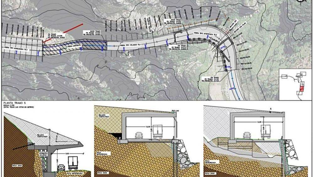 Fase 1 – Zona alta del Puerto (riesgo alto): se construirá una cubierta continua de 517 metros, que incluye cuatro nuevas viseras de 233 metros, un falso túnel de 65 metros y la conexión con las tres viseras ya existentes. El tramo más próximo a la cumbre contará con una solución mixta de hormigón armado y viseras metálicas, incluyendo un falso túnel porticado en curva, diseñado para permitir que los aludes discurran por encima sin afectar al tráfico, siguiendo modelos utilizados en corredores alpinos.