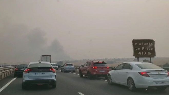 Un fuerte columna de humo ha provocado el corte de la autovía A-66 a la altura del municipio entre Villamañán y Ardón a causa de un nuevo incendio forestal originado en Benazolve.