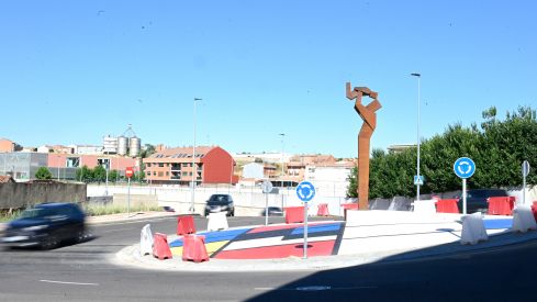 Y los trabajos de estas tres intersecciones circulares (las otras incluidas en este plan son la ejecutada recientemente en la confluencia de Sáenz de Miera con Los Aluches, la que da acceso a las piscinas del barrio de La Palomera y la que une la avenida de La Lastra con San Froilán) incluyen la colocación de sendas esculturas, una de las cuales ya puede contemplarse desde hace unos días.