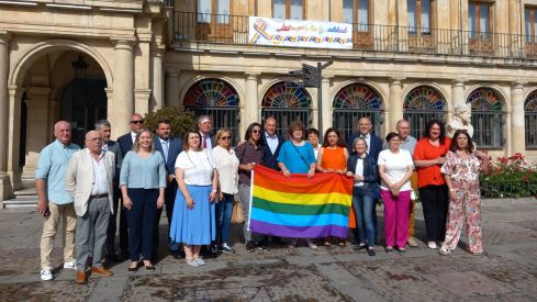 El Ayuntamiento de León se suma este viernes a la conmemoración del Día del Orgullo LGTBI con la instalación de una pancarta en el Ayuntamiento de San Marcelo con los colores del arcoíris que representa al colectivo y el lema ‘León por la igualdad’. El alcalde de la ciudad, José Antonio Diez, acompañado de miembros de la Corporación Municipal del PSOE, UPL y PP, ha querido apoyar las reivindicaciones de este colectivo y ha posado junto a miembros de la Asociación Awen LGTBIQ+ en la plaza de San Marcelo. Sin embargo, el Consistorio leonés tampoco ha organizado este año ningún acto institucional, aunque sí se hizo en los años 2019 y 2020.