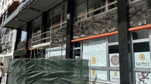 El Ayuntamiento de León, a través de la Concejalía de Desarrollo Urbano, dirigida por Luis Miguel García Copete, ha iniciado ya los trabajos se restauración del conjunto escultórico de hierro fundido que decora la portada del edificio consistorial situado en el número 10 de la avenida Ordoño II.