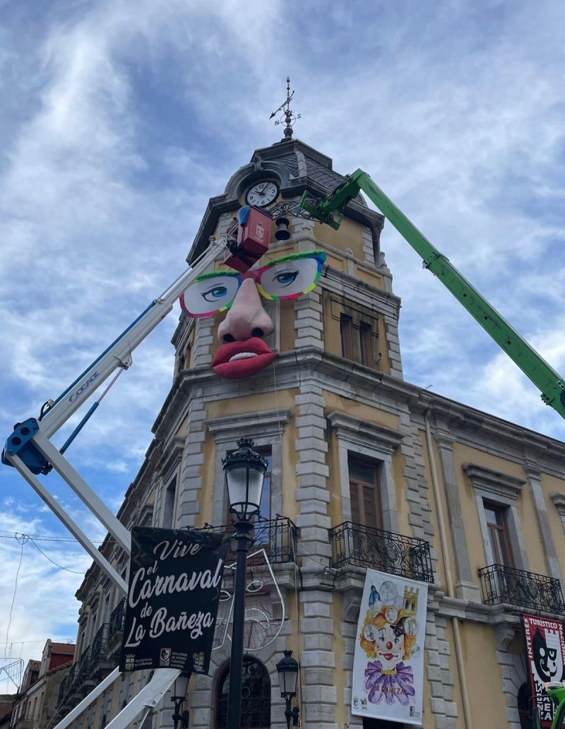 En la mañana de este viernes, y para sorpresa de los viandantes, el edificio del Ayuntamiento ha comenzado a modificar su aspecto y a acondicionarse de cara a los próximos días festivos. Se trata del segundo año consecutivo en el que se lleva a cabo esta iniciativa, con el objetivo de reforzar el ambiente carnavalero en la ciudad.