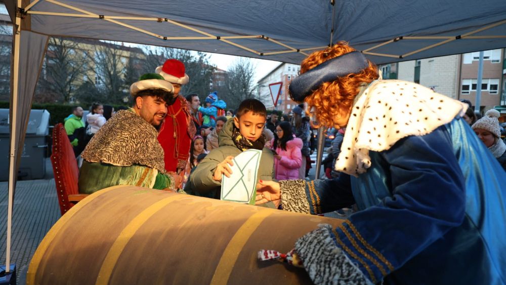 El Cartero Real sigue recorriendo los diferentes barrios de la ciudad de León. El objetivo es facilitar que los más pequeños puedan hacer llegar a los Reyes Magos las cartas con todos sus deseos para la noche más especial del año. Este lunes fue el turno del barrio de La Palomera, donde recibieron al Cartero Real con animación musical y diferentes sorpresas.