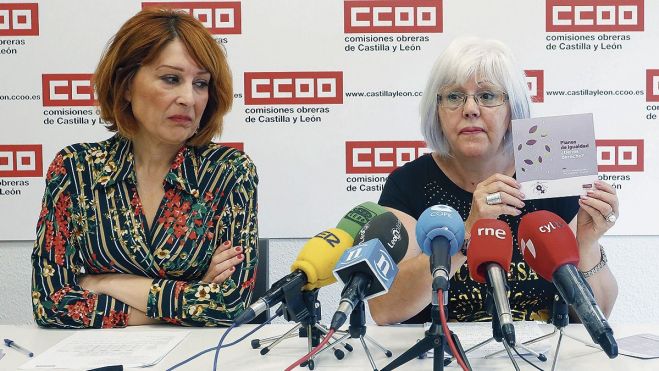 La agente de Igualdad de Comisiones Obreras (CCOO), Ana Olego, y la secretaria de Igualdad, Rosa Castro, durante la rueda de prensa. | ICAL