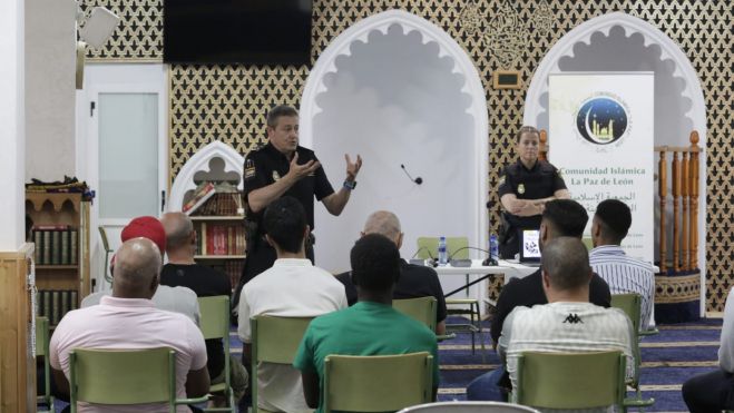 La Unidad de Participación Ciudadana de la Policía Nacional de León impartió este sábado una charla en la mezquita grande de la calle Francisco Fernández Díez de León, en Armunia, que gestiona la Comunidad Islámica La Paz.