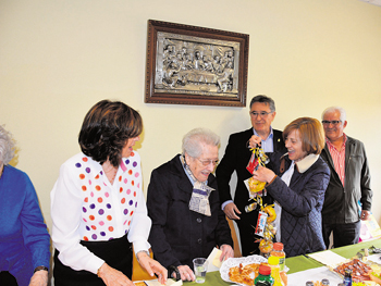 Su trayectoria ha sido objeto de reconocimiento por parte no sólo de familiares y amigos, sino de todo un municipio. Y es que, la residencia de las Dominicas de la Anunciata, en la Virgen del Camino, acogió un acto homenaje multitudinario al que acudieron miembros de la corporación municipal, de la junta vecinal, religiosos y demás personas cercanas a la hermana Nieves. Más de 100 asistentes en total que quisieron trasladar a esta centenaria su reconocimiento por todo un siglo de dedicación. Todos ellos cantaron al unísono el cumpleaños feliz a la centenaria, al son que marcó el profesor de piano de la Escuela Municipal de Música. Tras hacerle entrega de un cuadro-pergamino conmemorativo y una cuelga de cumpleaños leonesa, el broche final del acto lo puso el himno asturiano, con una versión muy especial para la ocasión que compuso una hermana Dominica.