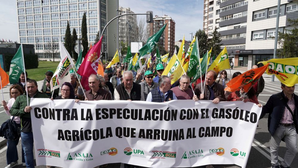 Medio millar de agricultores (con decenas de leoneses desplazados), según fuentes oficiales consultadas por Europa Press (y 1.000 según los organizadores) se movilizaron de nuevo este miércoles en Valladolid contra la «especulación feroz» de las multinacionales que ha disparado los costes de producción en el sector, especialmente del gasóleo y los fertilizantes, tras el conflicto de Irán, por lo que han exigido la puesta en marcha de medidas «urgentes y ayudas directas» para frenar esta situación.
