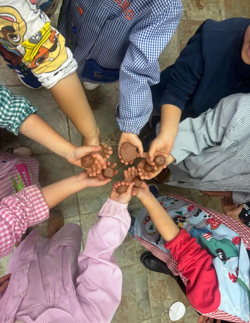 Durante las últimas semanas, el colegio ha trabajado en la recopilación de semillas autóctonas -para ello han estado trabajando con la asociación Bierzo Renace- para que cada alumno y alumna pueda elaborar su propia bomba de semillas. Estas pequeñas esferas están hechas con arcilla, agua, compost, tierra, ceniza y fibra de coco, y llevan en su interior semillas de diente de león, majuelo o espino blanco, endrino, grama común, holcus, festuca, cebada silvestre, avenella flexuosa...