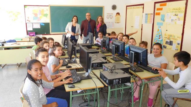 La empresa cementera cede catorce ordenadores completos a los colegios La Abadía y Toral de los Vados al renovar los de la planta de esta localidad