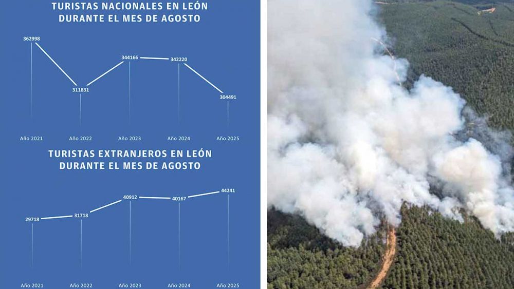 La tendencia en lo que respecta a la llegada de turistas nacionales es completamente opuesta, probablemente por el hecho de que las cancelaciones motivadas por los incendios eran más sencillas de realizar. De esta manera, se contabilizaron en León 304.491 españoles de otras provincias a lo largo de agosto, cuando en el mismo mes de 2024 se habían superado los 342.000. La caída fue, por tanto, superior al 11 por ciento hasta situarse en cifras similares a las que se registraban en algunos de los años marcados por las restricciones a la movilidad de la pandemia del Covid.