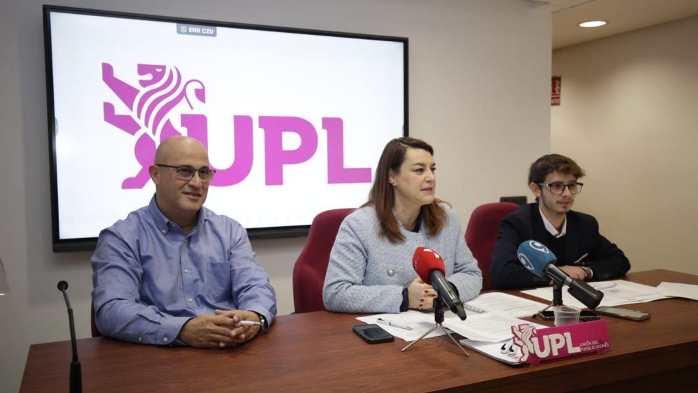 La secretaria de Educación de UPL y concejala en el Ayuntamiento de León, Sheila Fernández, acompañada por los integrantes de este departamento, José Vicente Álvarez y Gustavo Díez, denunció este lunes en rueda de prensa el «deterioro» de la Atención a la Diversidad en los centros educativos de Castilla y León y la «falta de respeto» hacia la labor de los maestros especialistas de Audición y Lenguaje.