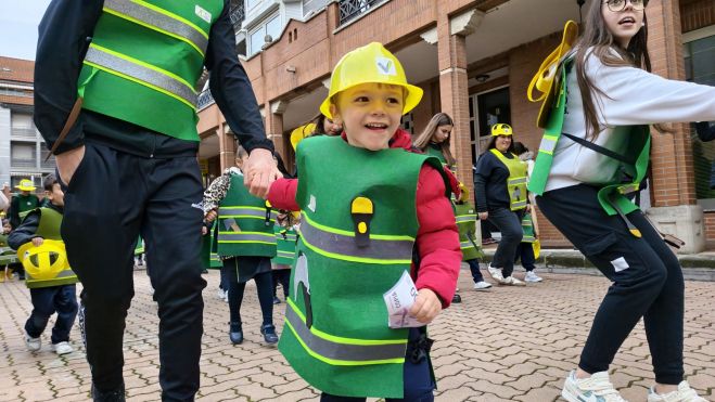 No obstante, a ritmo de charanga, los pequeños y no tan pequeños del Colegio de Nuestra Señora del Carmen disfrutaron de un pequeño desfile en el entorno de su centro educativo disfrazados de bomberos forestales, con trajes elaborados de forma artesanal por el propio alumnado en colaboración con sus familias. A través de esta iniciativa, el centro quiso reconocer y agradecer la importante labor que realiza la Brif de Tabuyo del Monte en la defensa de los montes y del entorno natural y, por ello, contaron en el desfile con la presencia de alguno de los miembros.