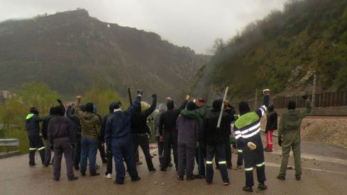 Tres montañas de carbón en medio de la carretera obligaron a cortar la circulación esta mañana durante más de siete horas en la AS 117, en la vertiente asturiana del puerto de Tarna, después de que tres camioneros fueran obligados por un grupo de encapuchados a descargar todo el carbón que llevaban hacia la central térmica de Guardo, en Palencia y dos personas han sido detenidas según informa el digital 'elcomercio.es'