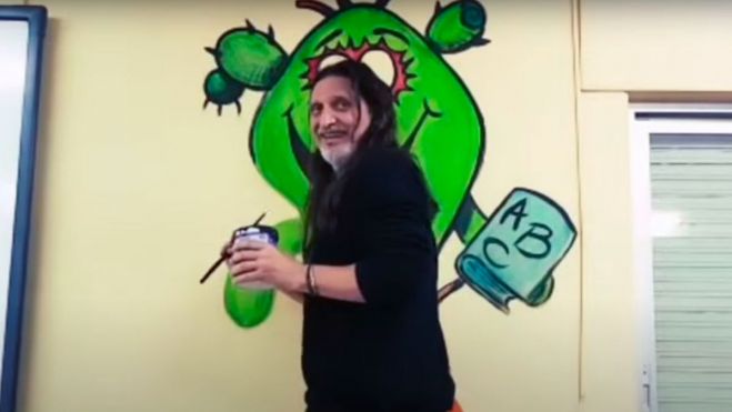 El dibujante leonés realizó los murales que visten este espacio renovado del colegio y esperaba asistir a su inauguración