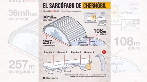 La bóveda que cubre el reactor que se accidentó en 1986 soporta el impacto de un terremoto de magnitud 6 y vientos de hasta 330 km/h