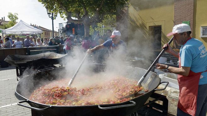 No cabía este domingo ni un alfiler en Fresno de la Vega. Sus calles, abarrotadas, volvieron a congregar a miles de visitantes deseosos de volver a casa con los pimientos morrones que producen los horticultores de la localidad. Y para los que iban con dudas y preferían probar antes el producto, estaba la gran pimentada que un año más ofrecen los miembros de la Asociación Fraxino en la plaza Mayor de la localidad. En ella las sartenes no paraban de freír pimientos y las espumaderas no cesaban de sacar huevos fritos para acompañarlos. Un vasín de vino prieto picudo para completar la degustación y pilas cargadas para pujar de camino al coche los pimientos morrones. Fueron más de 3.500 kilos de pimientos los que se sirvieron y es que la gran pimentada congrega cada año a un mayor número de visitantes.