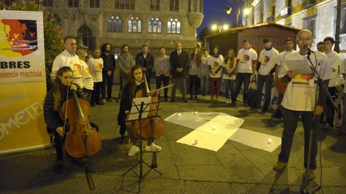 Tras la primera actuación de las violonchelistas, los asistentes a un acto al que fueron sumándose muchos viandantes guardaron un minuto de silencio por todas las víctimas de la violencia machista en lo que va de 2015.