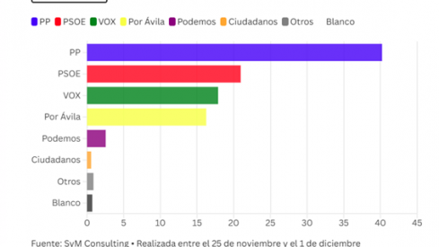 En Ávila, el PP volvería a ser el partido más votado, con un 40,22% de estimación de voto y entre tres –los que logró hace cuatro años– y cuatro procuradores. Segunda fuerza sería el PSOE, que rozaría el 21% de los votos y obtendría entre uno y dos representantes en las Cortes.