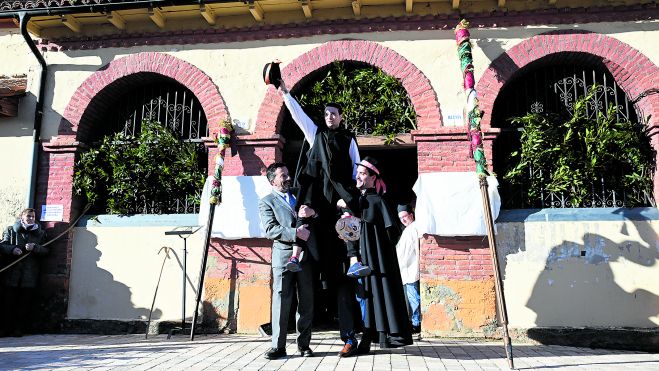 Más tarde hubo tiempo para la carnavalada y paseo en carro de los novios al que siguió el convite con canto de la rosca y carrera del rosco y el monto frente a la casa de la novia. Para cerrar la jornada no faltó el banquete en el centro cívico, cantares de boda, el relato a los novios y el baile popular.