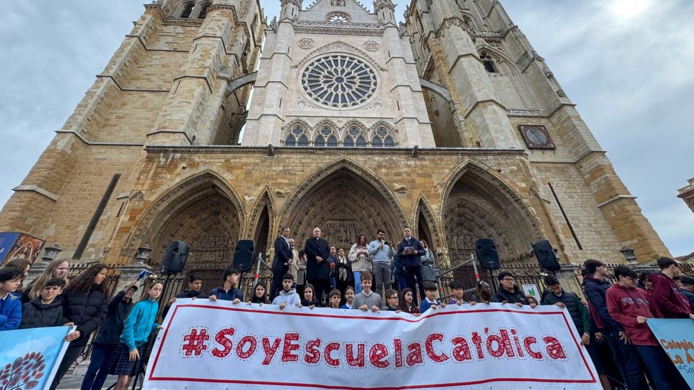 Los centros educativos de Escuelas Católicas de León celebraron este miércoles su día, una jornada de encuentro que reunió alrededor de un millar de alumnos, docentes y representantes de la comunidad educativa en el entorno de la Catedral de León.