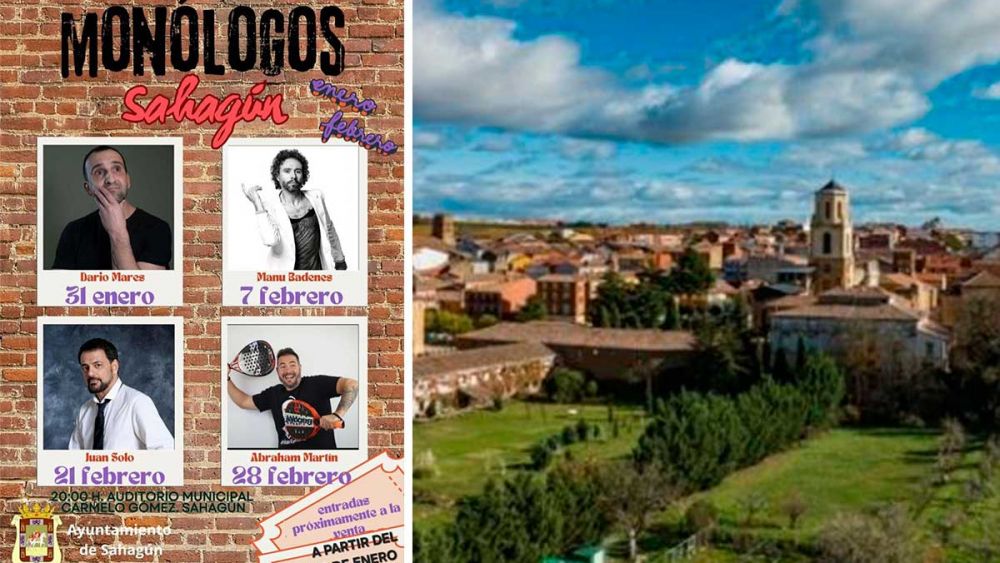 Cuatro monologuistas se dan cita en otros tantos sábados, en los que el humor será el mejor aliciente para visitar Sahagún. Los espectáculos están programados para las 20:00 horas en el Auditorio Carmelo Gómez y tienen un precio de cinco por entrada para cada uno de ellos y de 15 euros para el pase conjunto de todos los monólogos.