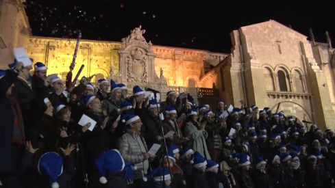 «Cantando una canción que diga con mucha humildad que todos los leoneses piden a la humanidad que reine la paz». Con este deseo en forma de villancico felicitó anoche La Nueva Crónica a todos los leoneses durante un acto celebrado en la plaza de San Isidoro.