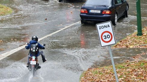 Y es que en apenas unos instantes el cielo 'se abrió' para descargar coincidiendo con una de las horas punta en la capital, la de la salida de los colegios. Esto provocó numerosas retenciones en vías de toda la capital, con aglomeraciones de coches que, por ejemplo, bloquaron el puente que une la glorieta de Pinilla con la conocida como rotonda 'del avión'. En Santo Domingo o en la propia ronda también se hicieron notar las complicaciones provocadas por el agua que, apunta a quedarse no solo durante todo el día de hoy sino también esta semana.