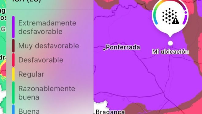 En un mensaje en la red social Instagram recogido por Europa Press, la Guardia Civil de León ha advertido de esta circunstancia, con las partículas PM2.5 en niveles de 124 microgramos por metro cúbico, por lo que el aire es "nocivo".
