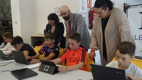 El subdelegado del Gobierno, Héctor Alaiz Moretón, la concejala de Juventud del Ayuntamiento de León, Vera López Álvarez, y Ester Maestro, directora de Proyectos de Fundación Cibervoluntarios, han visitado una de las actividades de Campamento Digital, una iniciativa de formación presencial y gratuita para niños, niñas y jóvenes de 9 a 17 años en la que crean, juegan y se divierten mientras aprenden a hacer un uso seguro y responsable de la tecnología, guiados por educadores especializados.