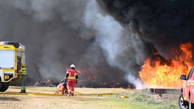 El incendio producido esta madrugada en una nave industrial de residuos plásticos situada en el municipio leonés de La Bañeza se encuentra controlado, aunque las labores de extinción se prolongarán durante unos días.