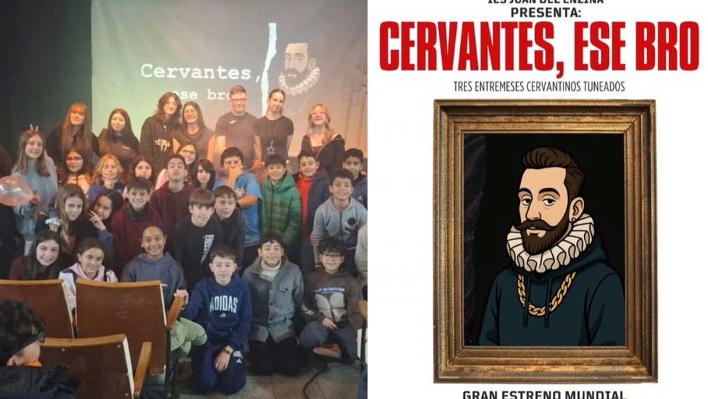 La iniciativa parte de su profesor, Mario Paz, quien ha ‘tuneado’ tres entremeses cervantinos para acercarlos a su alumnado. ‘Cervantes, ese bro’ es la obra teatral que ha salido adelante «en tiempo récord» ya que estos estudiantes solo tienen dos horas semanales de Artes Escénicas. «Les pareció bien la idea de adaptar un entremés cervantino con temáticas cercanas a la actualidad. Elegí tres que pudieran adaptarse bien y la respuesta ha sido muy buena. Es un grupo muy entusiasta del teatro y cada trimestre hacemos un proyecto nuevo», explica el docente del Juan del Enzina.