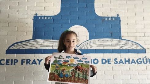 Una triple alegría, para la alumna, para su colegio y para las familias de Sahagún, que ha sido posible gracias un dibujo sobre los cultivos que incluye a varios agricultores trabajando, un tractor y hasta el logo de Fertiberia. Este trabajo de Irene ha llamado la atención entre las miles de propuestas de todos los rincones de España que fueron presentadas al concurso.