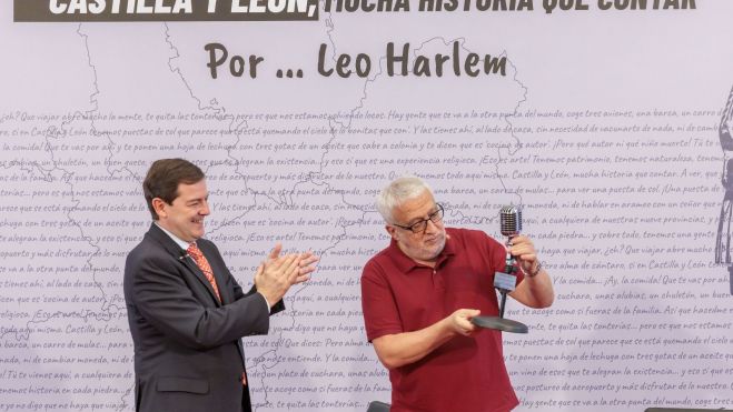El presidente de la Junta de Castilla y León, Alfonso Fernández Mañueco, ha presentado hoy “Castilla y León, mucha historia que contar”, un proyecto divulgativo impulsado por el Ejecutivo autonómico que cuenta con la participación del comunicador y humorista Leo Harlem.