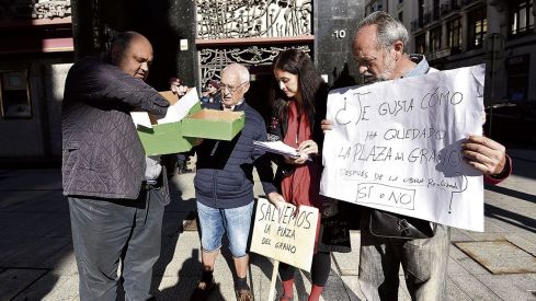 El grupo de ciudadanos que, encabezado por Ramiro Pinto, impulsó el pasado domingo una consulta popular sobre el resultado de la reciente remodelación de la plaza del Grano quiso entregar este jueves los resultados en el Ayuntamiento de León, aunque finalmente no les fue posible.