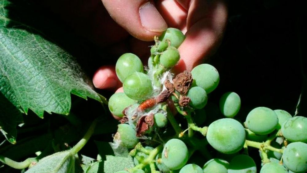 La Polilla del racimo (Lobesia botrana), es una especie de insecto lepidóptero que se alimenta de las bayas del racimo. Los adultos de polilla realizan las puestas de huevos de los que nacen las larvas que posteriormente dañan las uvas. Los daños que producen las larvas en las bayas favorecen la aparición posterior de podredumbres en el racimo, y si son muy cuantiosos, reducen de forma importante la cantidad de uva que se vendimiará.