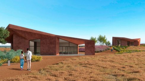 Bautizado por sus autores como ‘Piedra y tierra’, el proyecto ganador tiene como principal característica el modo en el que plantea una integración y casi una mimetización con el paisaje, con tres volúmenes que se integran con los cerros de Lancia empleando materiales tan convencionales y a la vez tan innovadores como son los adobes prefabricados de tierra comprimida a alta presión, que levantan muros con unas geometrías complejas que recuerdan a la papiroflexia japonesa. La singularidad más destacada de la propuesta es que, en vez de plantear un único edificio, propone fragmentar los espacios en tres volúmenes independientes que permitirán adaptar su uso a las necesidades cambiantes del yacimiento. El jurado valoró especialmente ese rasgo, destacando que ‘Piedra y tierra’ “es una propuesta realista e icónica, una arquitectura propia del siglo XXI que combina el arraigo con la vanguardia formal”.