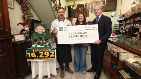 Con una sonrisa radiante de oreja a oreja y “muy contenta”, la asturiana Cristina Lobato con raíces leonesas recogió este jueves el cheque de los 10.000 euros tras resultar la ganadora del premio que escondía el roscón de trufa y nata que compró en la Confitería Conrado de La Bañeza con la papeleta que contenía el numero 16.292.