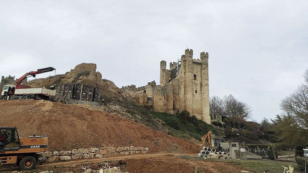 Antes de que comenzara el verano, empezaron las obras en el castillo de Valencia de Don Juan, una actuación encaminada a consolidar la estructura del que es el emblema del municipio coyantino y su bien patrimonial más preciado. Poco a poco su entorno más cercano al cauce del río Esla ha ido cambiando su fisionomía a base de mover camiones y camiones de tierra permitiendo así acabar con la erosión del escarpe en el que se asienta la fortaleza y propiciando la estabilidad de la fortaleza gótica. Ahora las obras ya han entrado en su fase final y el Consistorio ya ve cercana la finalización de una intervención que ha sido acometida como «la prioridad más urgente en cuanto a la crítica situación que presentaba toda la ladera, en especial las torres del noroeste».